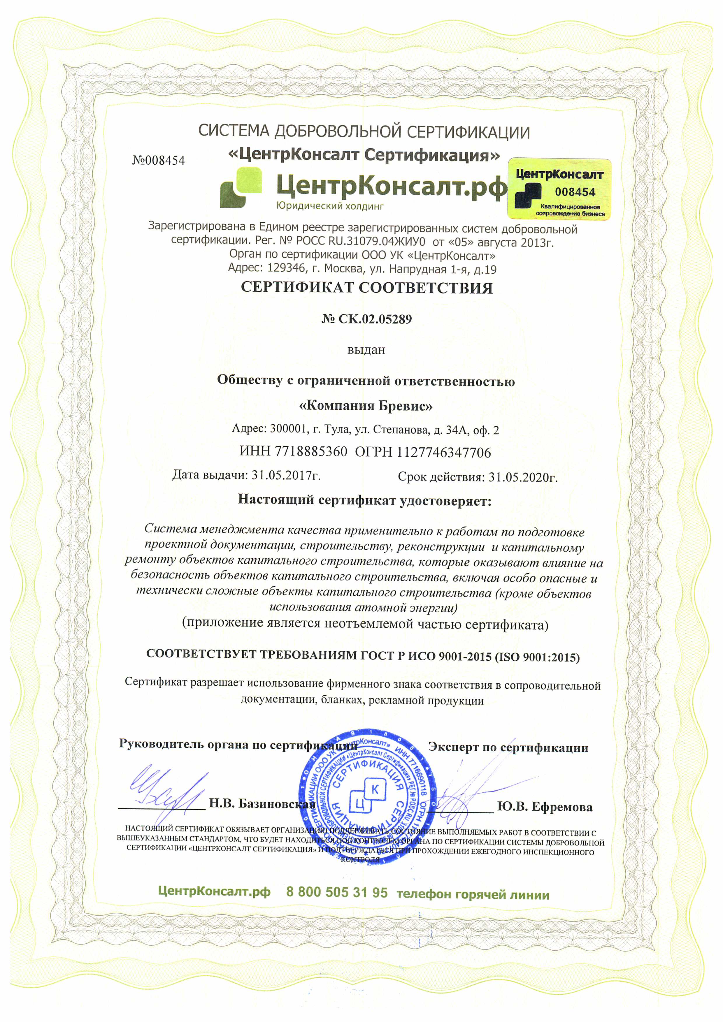 ИСО сертификат КБ аудиторы Суслин, Мелехов, Жуков