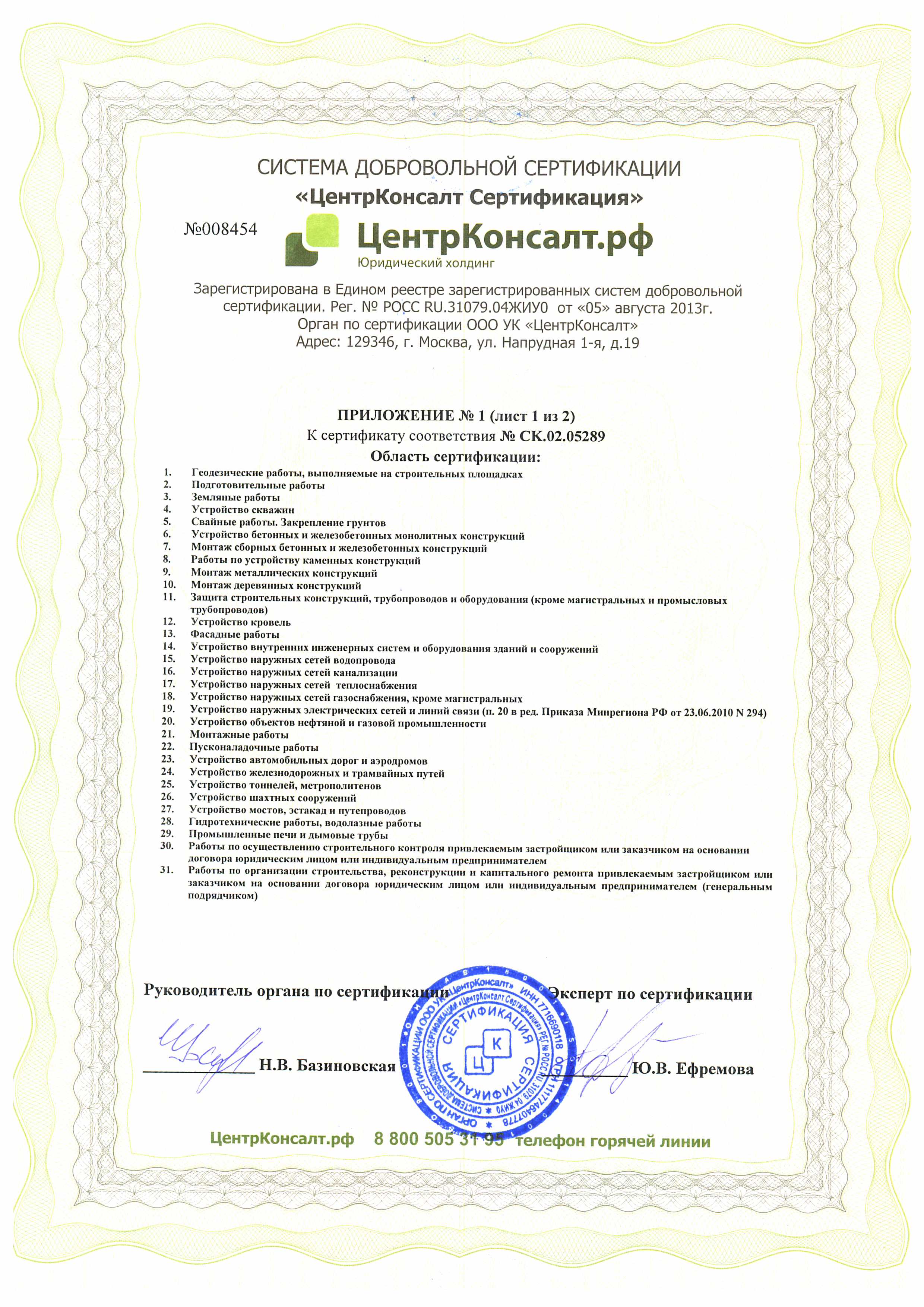 ИСО сертификат КБ приложение 1