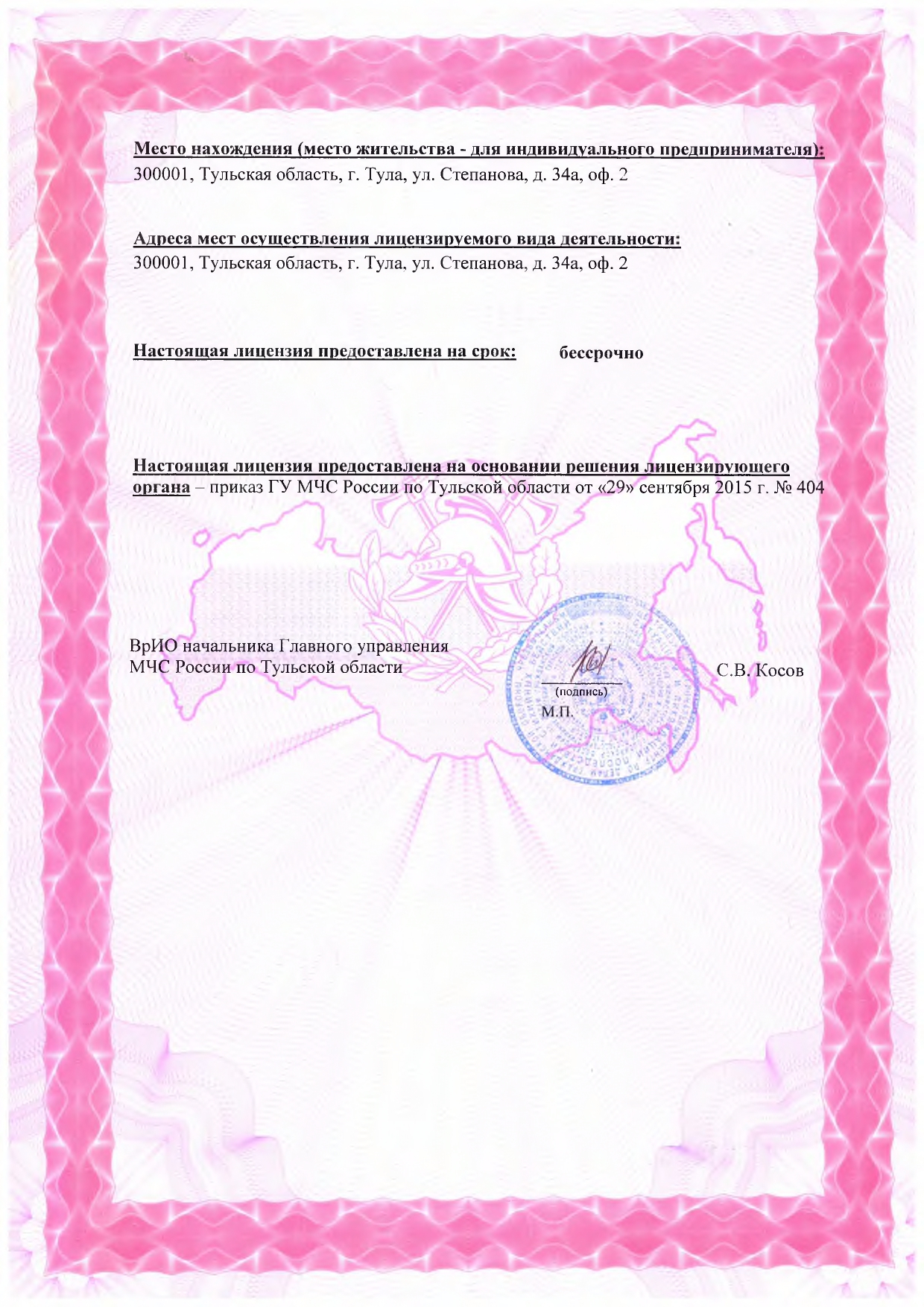Лицензии МЧС приложение 2